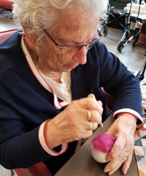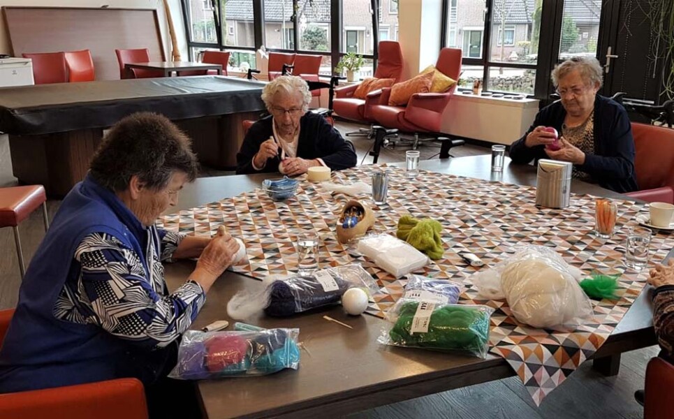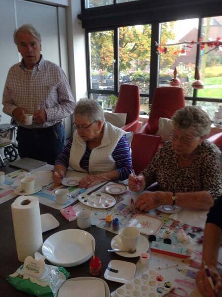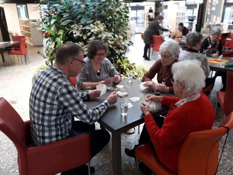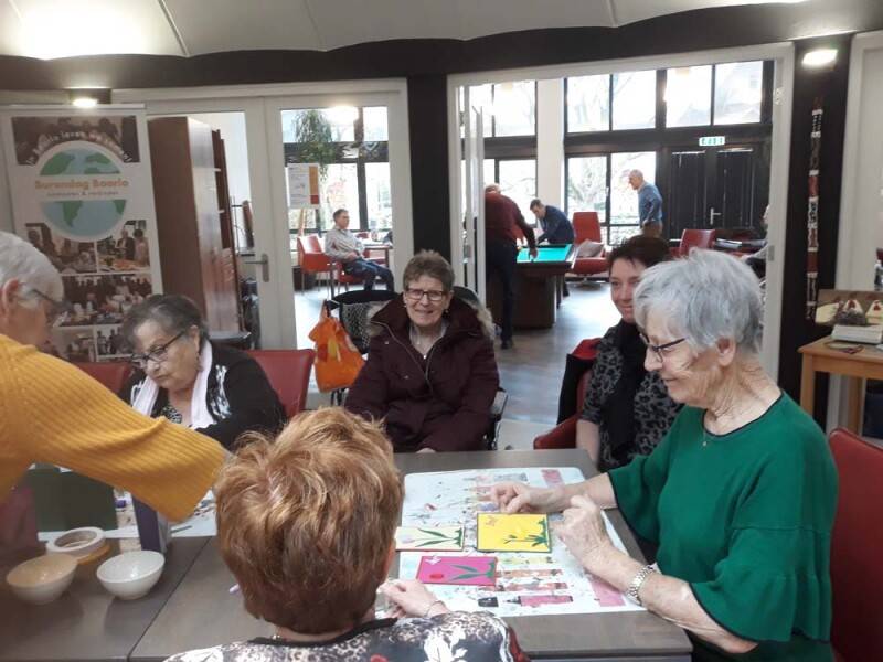 Gewoon een gezellige morgen kaarten maken met Lea, de heren aan het biljart.