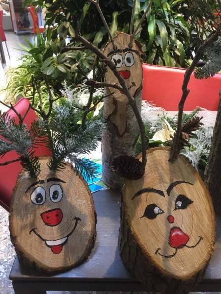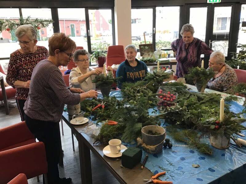 Er werden o.l.v. Mia prachtige creaties gemaakt op houten stammetjes geleverd door onze "koffieautomaten man" Broer Sitsen.